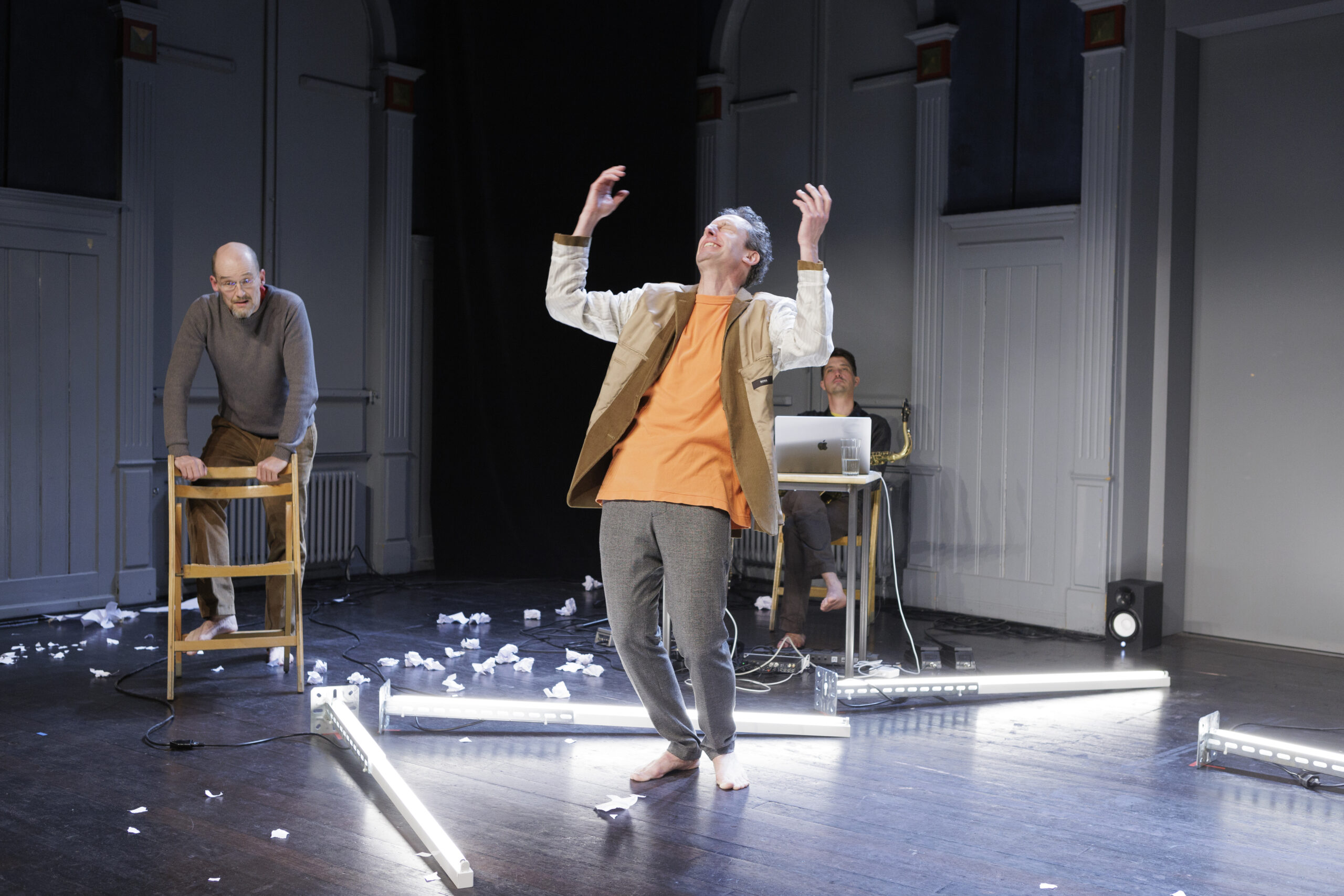 Eine barfüssige Groteske für zwei Schauspieler und einen Musiker / Premiere war am 4.März 2023 im Theater Ticino in Wädenswil ZH